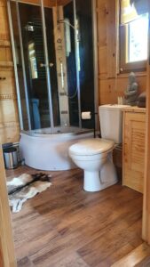 W Łazience znajduje się wygodna kabina prysznicowa,toaleta,mydło do dezynfekcji rąk, ręczniki do rąk, suszarka do włosów * WAŻNE w łazience posiadamy guest towels mniejsze ręczniki dlatego zawsze prosimy zabrać ze sobą ręczniki do kąpieli w jacuzzi i do sauny + klapeczki.